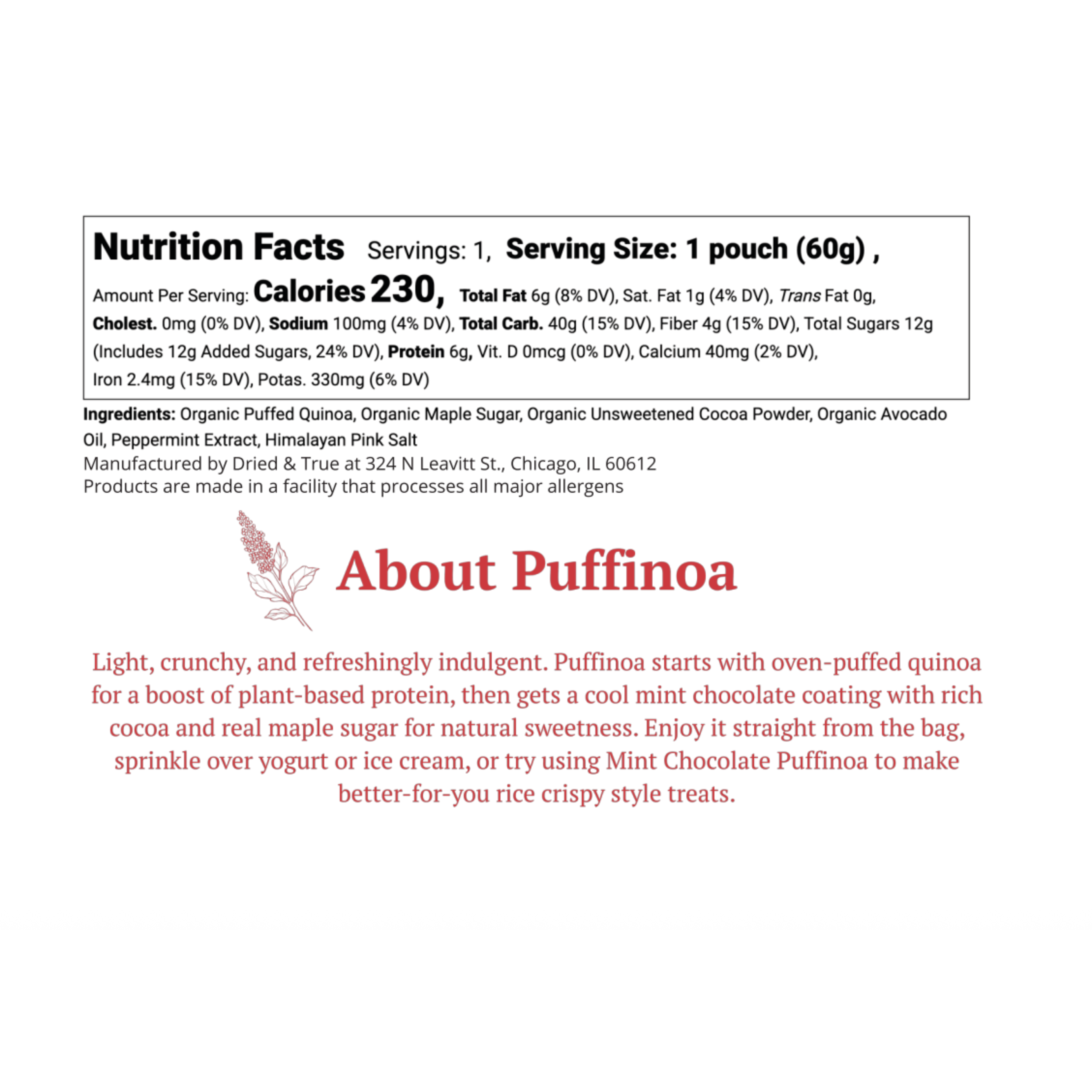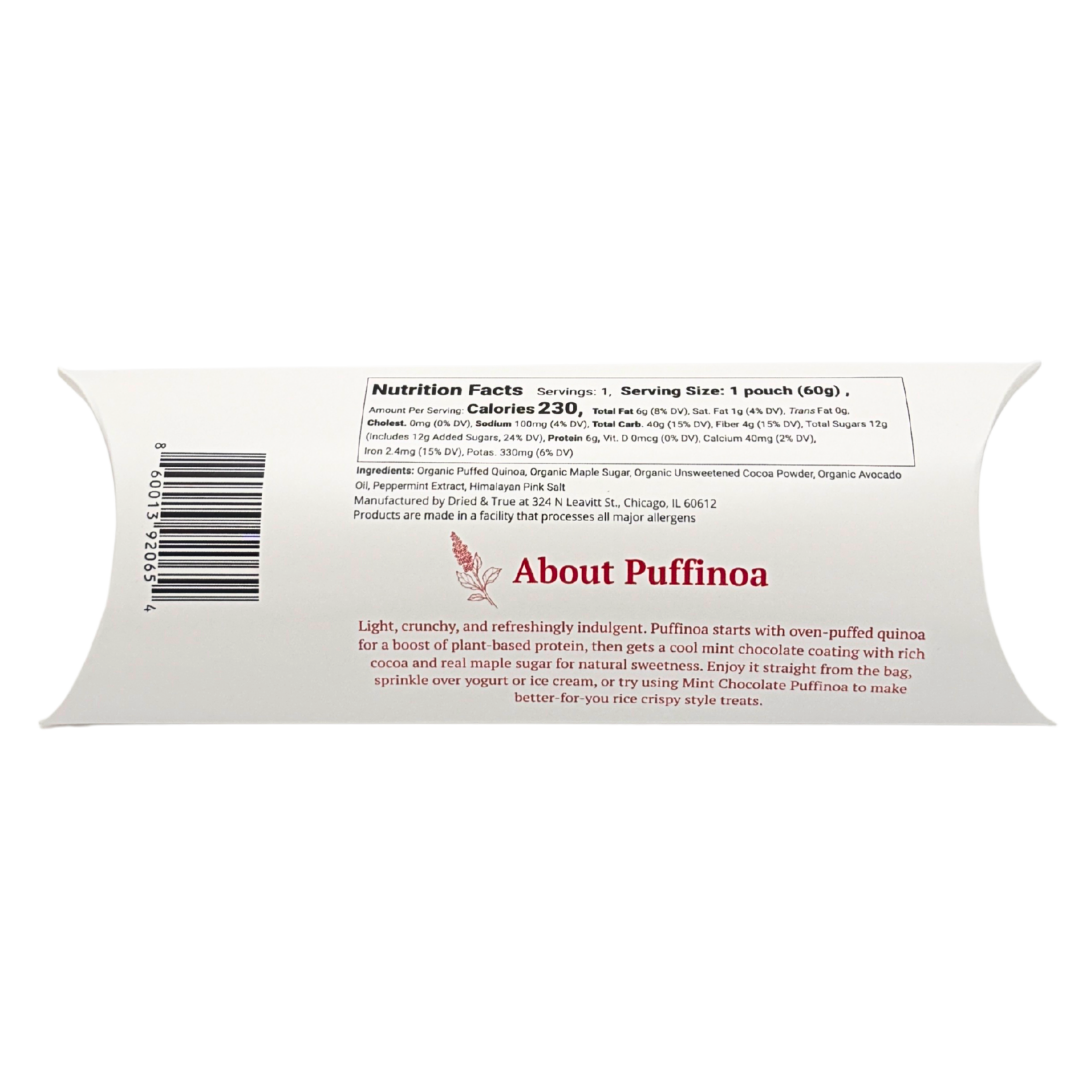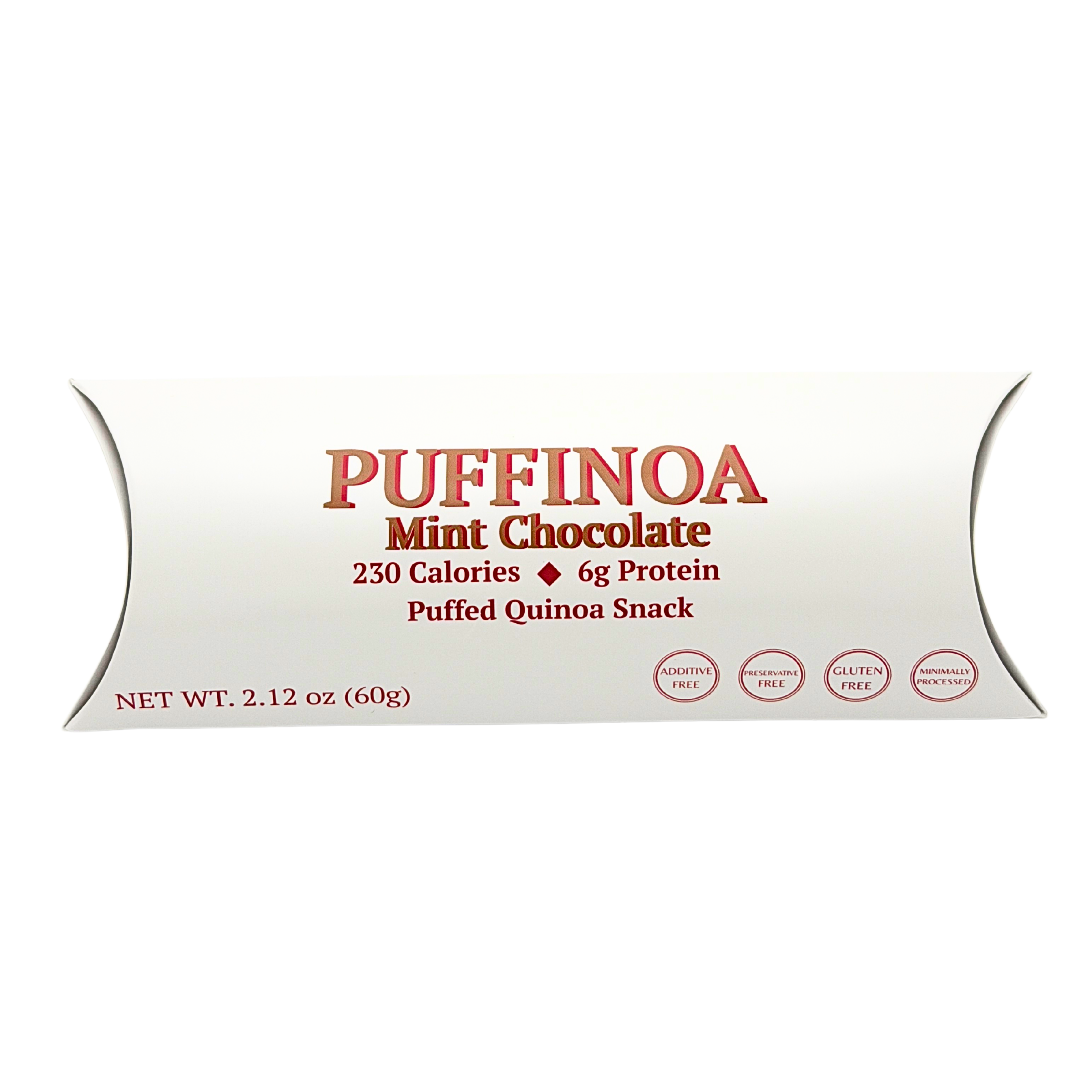 - Mood-Boosting Munch: Packed with wholesome energy, this mint chocolate Puffinoa snack is the perfect balance of indulgence and nutrition. Keep them in your bag, your desk, or your pantry for a refreshing lift anytime of day.
